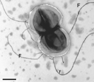 | Cell surface structures (flagella, pili, fimbriae): present |